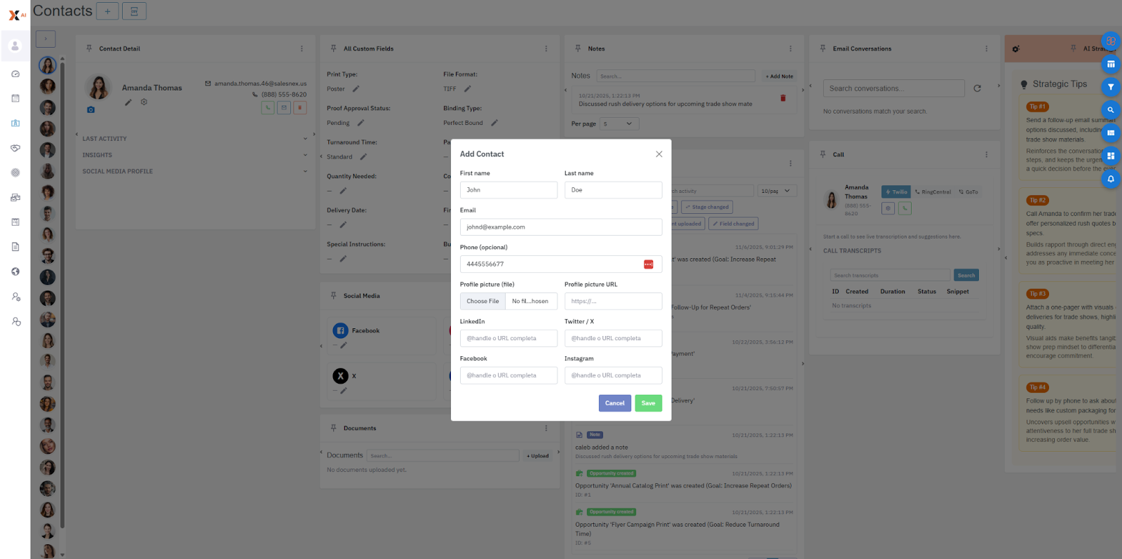 - Bulk imports: To add multiple contacts at once, see Importing Contacts into SalesNexus.