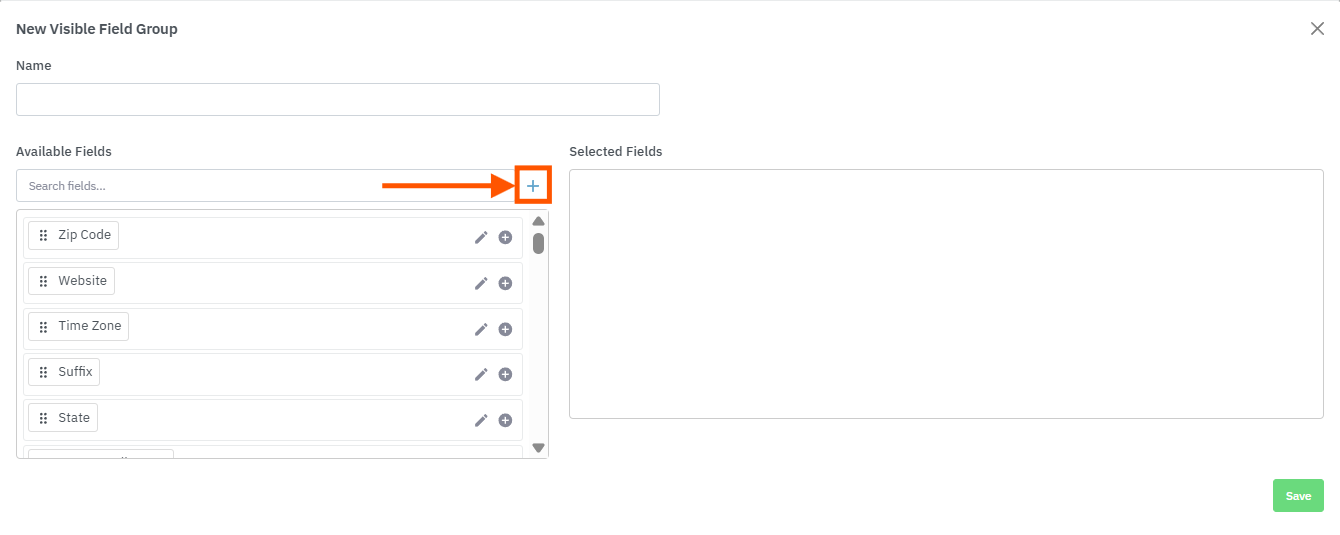 Inside the Panel Editor, click the + button in the Available Fields section to open the New Custom Field window.