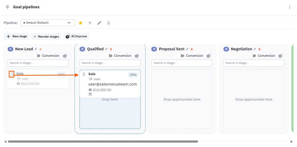 Sales Goals in SalesNexus unify goal tracking, pipeline management, opportunity movement, and conversion measurement into a single, cohesive experience. By combining visual pipelines with real-time metrics and automation, Sales Goals give teams the clarity and control needed to drive consistent sales performance.