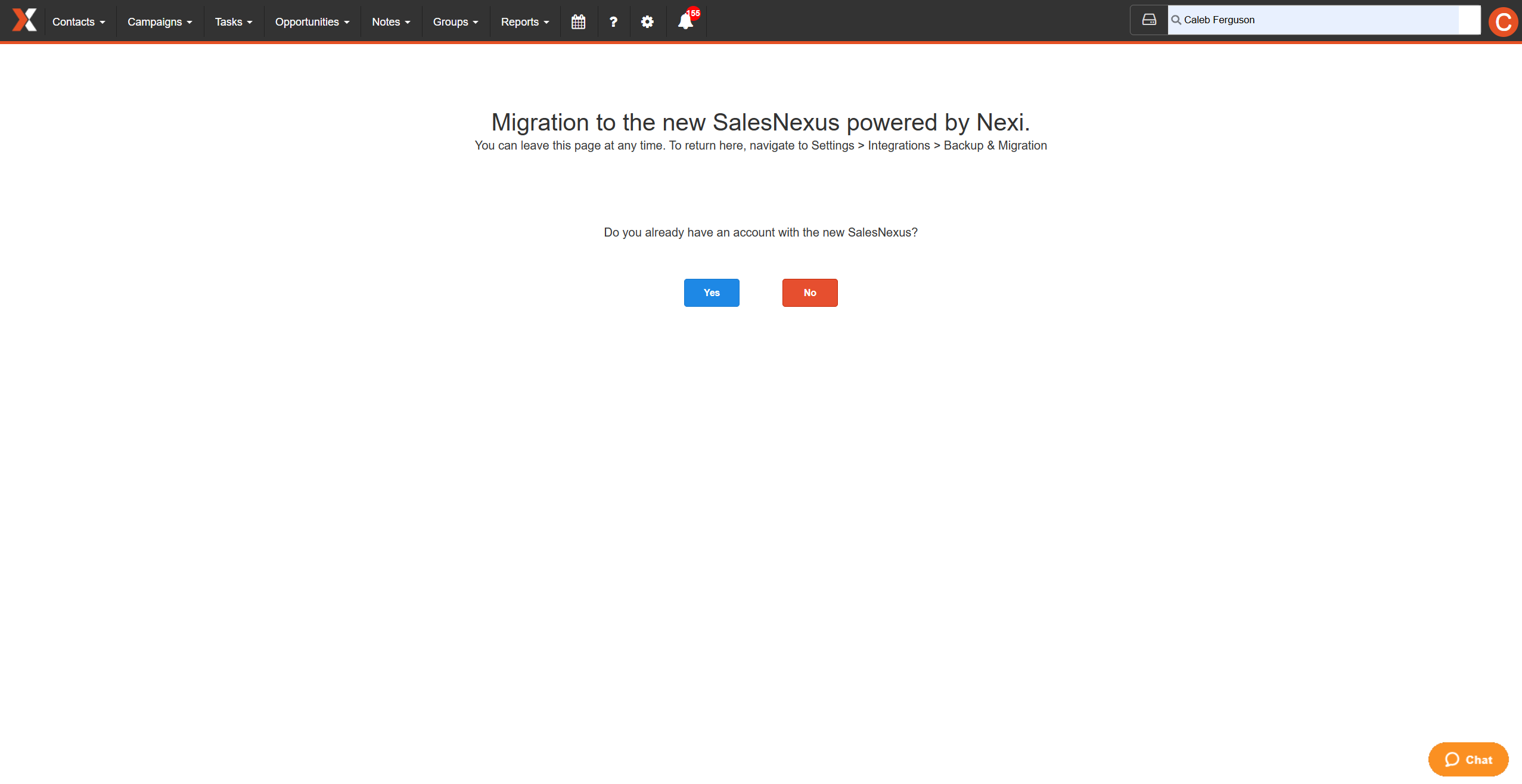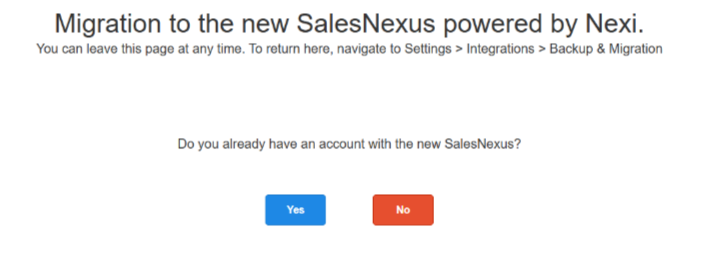 “Do you already have an account with the new SalesNexus?”