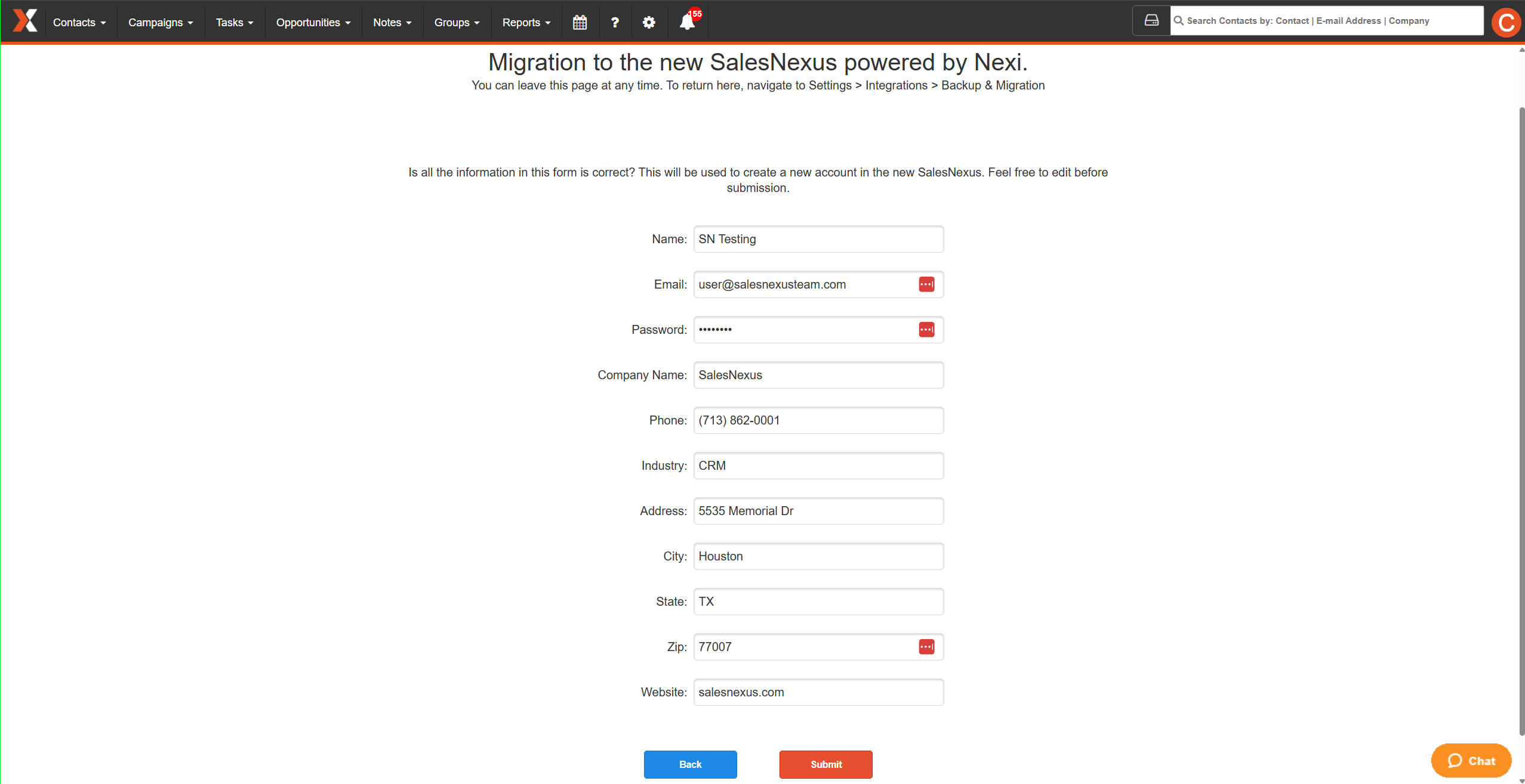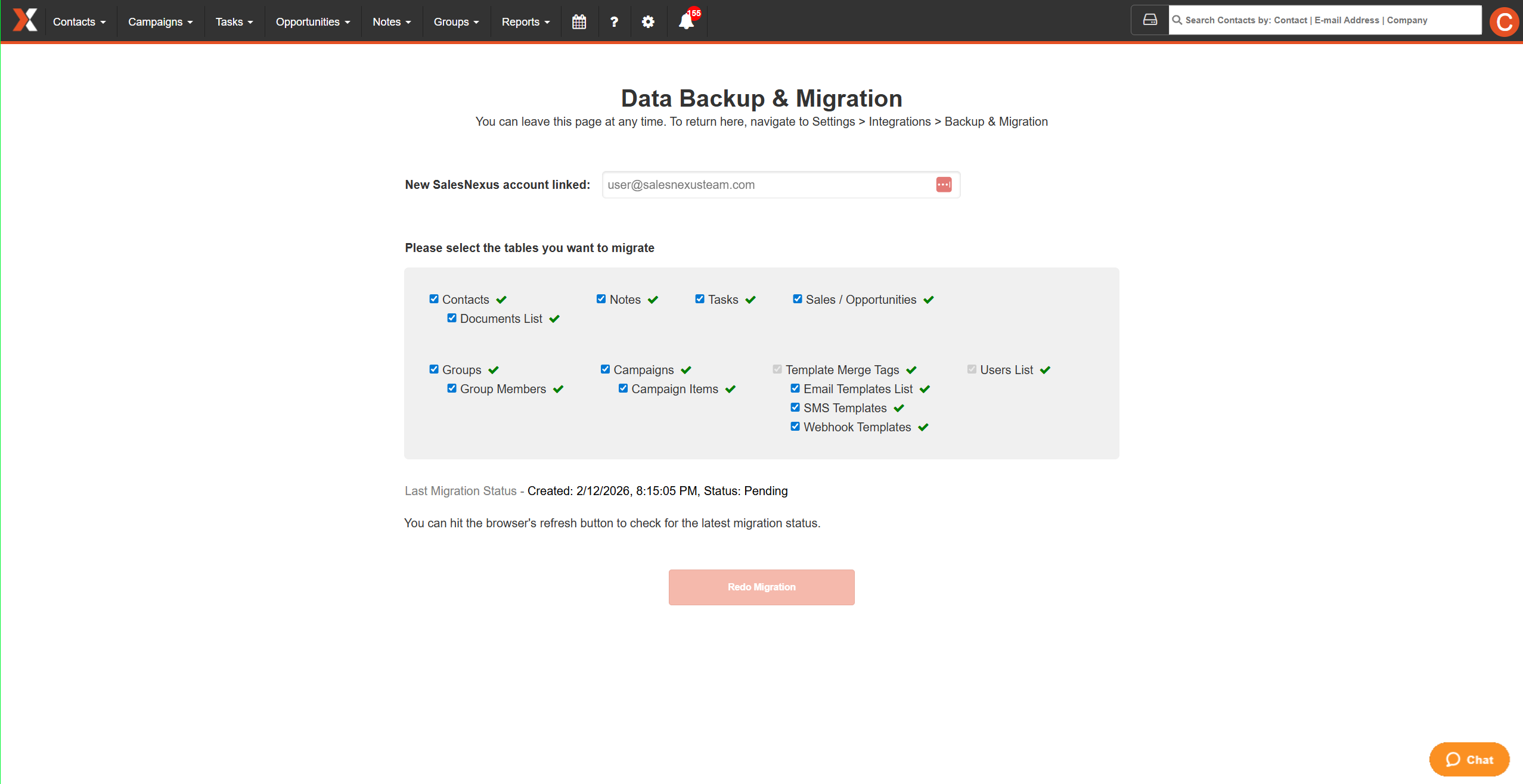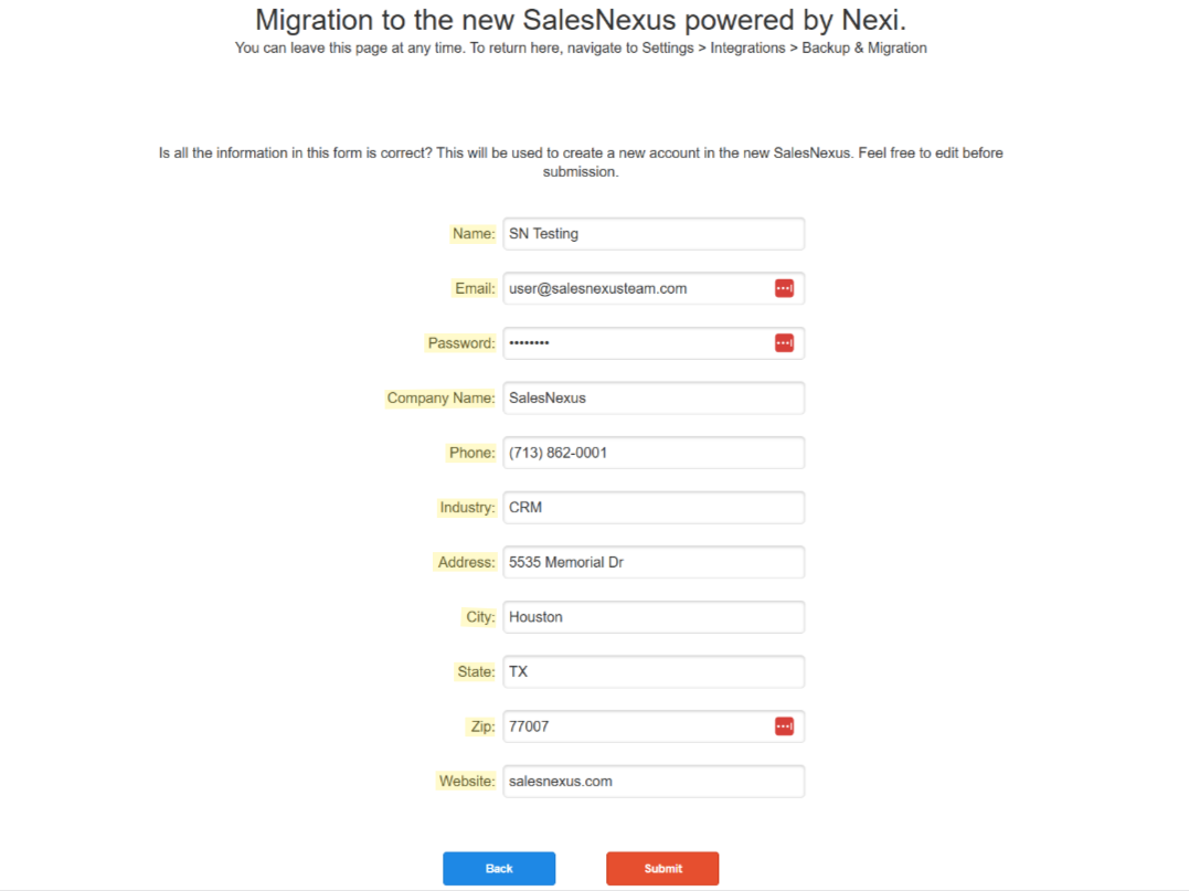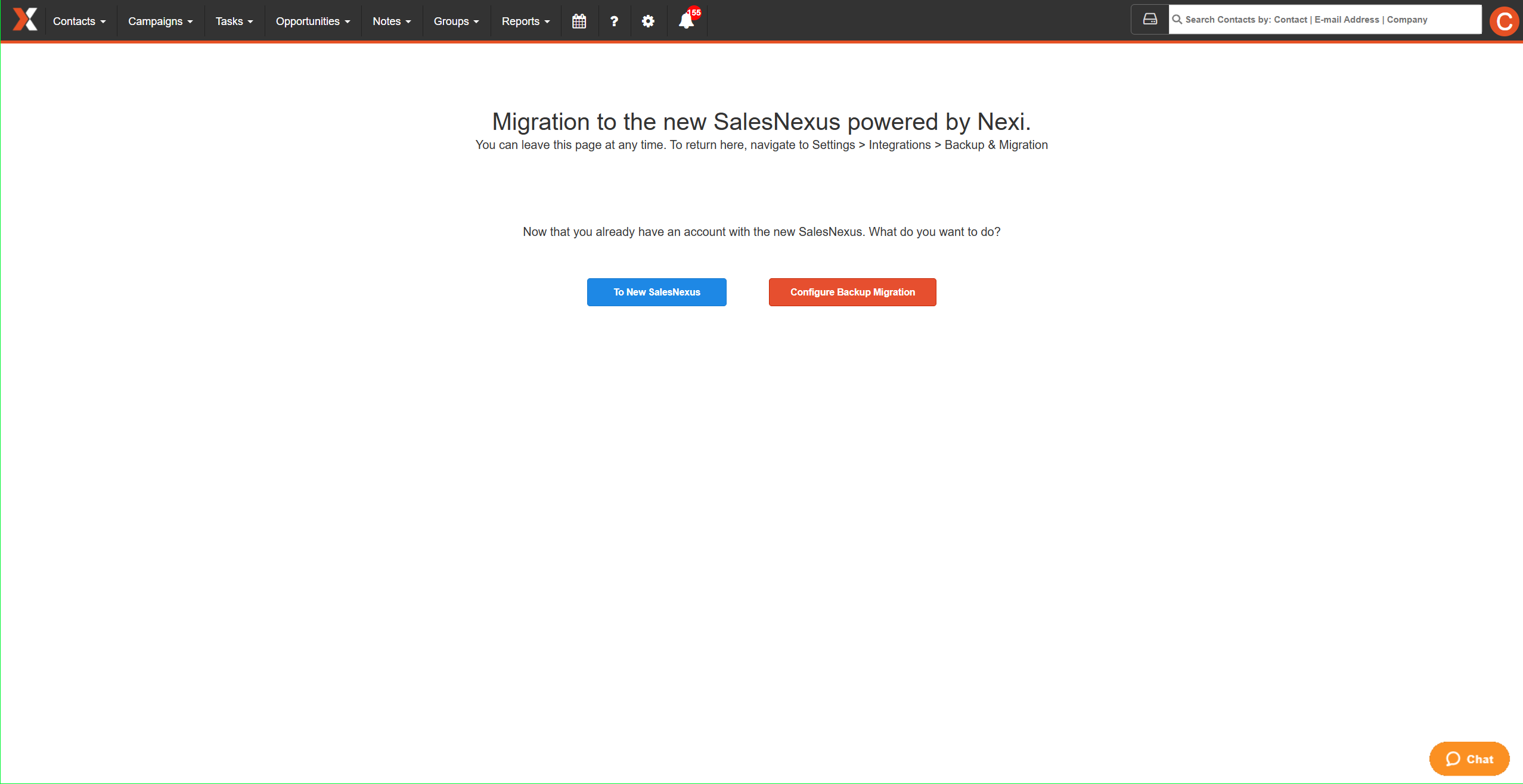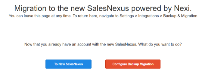 To New SalesNexus – Enter your new system.